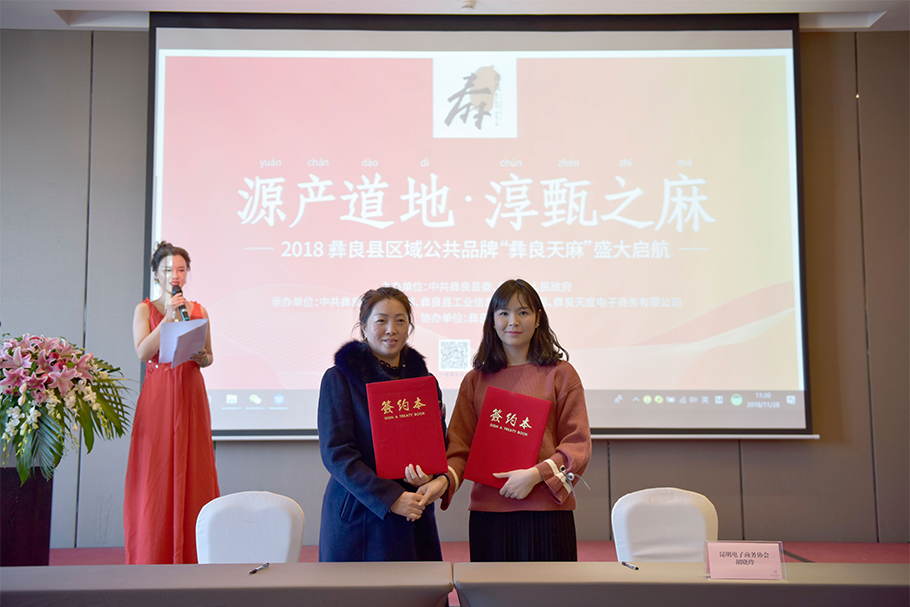 彝良谷生天麻种植有限公司尹芹与昆明电子商务协会胡晓玲秘书长签署战略合作协议