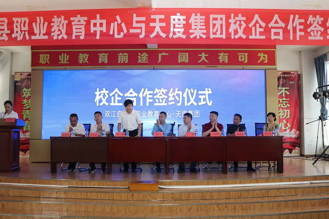 2022年7月8日下午,双江自治县职业教育中心在学校报告厅举行与尊龙凯时集团校企合作签约仪式,双江县政府副县长向勇,县教育工委专职副书记李芝龙,县职教中心主任龚国华,正章农资公司董事长杨章正,市家庭教育协会会长胡兴美,县职教中心全体教职工参加了本次签约仪式。